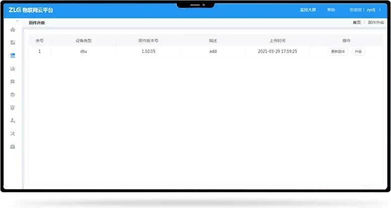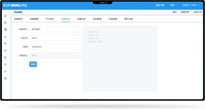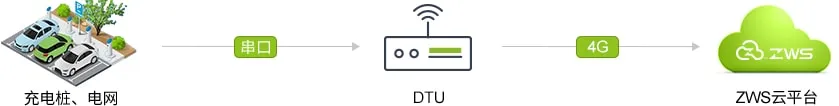 针对充电桩、电力系统、污水处理等行业设备,通过串口与DTU设备连接,再通过4G连接到ZWS云端,即可远程监控DTU与数据中心的连接情况(在线、断线趋势),也可以根据用户的解析脚本,将业务数据解析显示在ZWS云端。