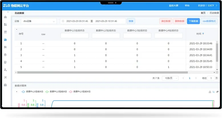 图表的形式呈现DTU与数据中心的上线离线趋势,直观监控DTU的稳定性。