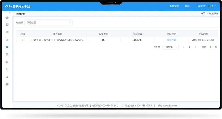 监测DTU离线状况,离线时间超限告警,并及时以短信/邮箱形式通知用户。